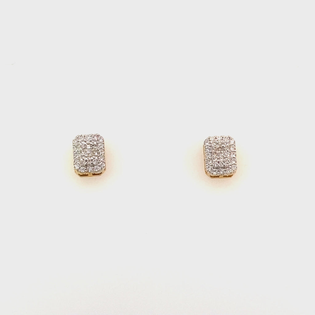 Earrings-diamond clusters rectangular studs 14kt yellow gold-amba