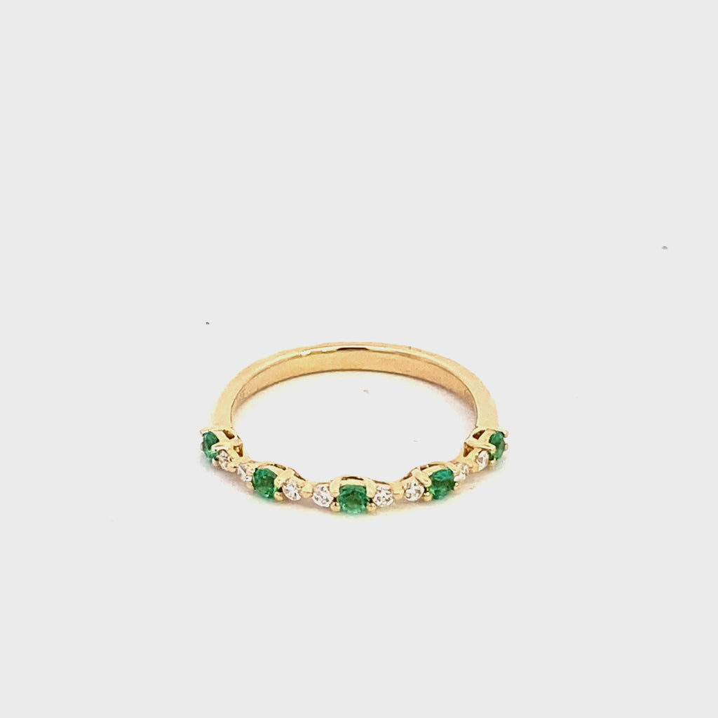 Emerald & diamond anniversary band with 8 emeralds & 8 diamonds in 14kt yellow gold by Nemati