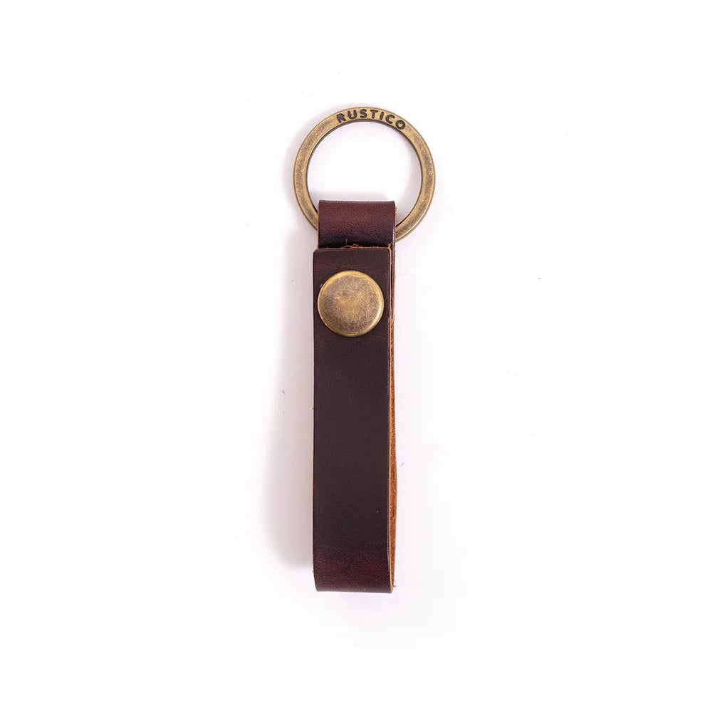 Simple and functional, the Loop Leather Keychain is handcrafted around a brass key ring with a brass snap. Chemicals will weaken the leather over time. Be patient. Its ruggedness will grow in character with you. The oils from your skin shape the patina's look over time.