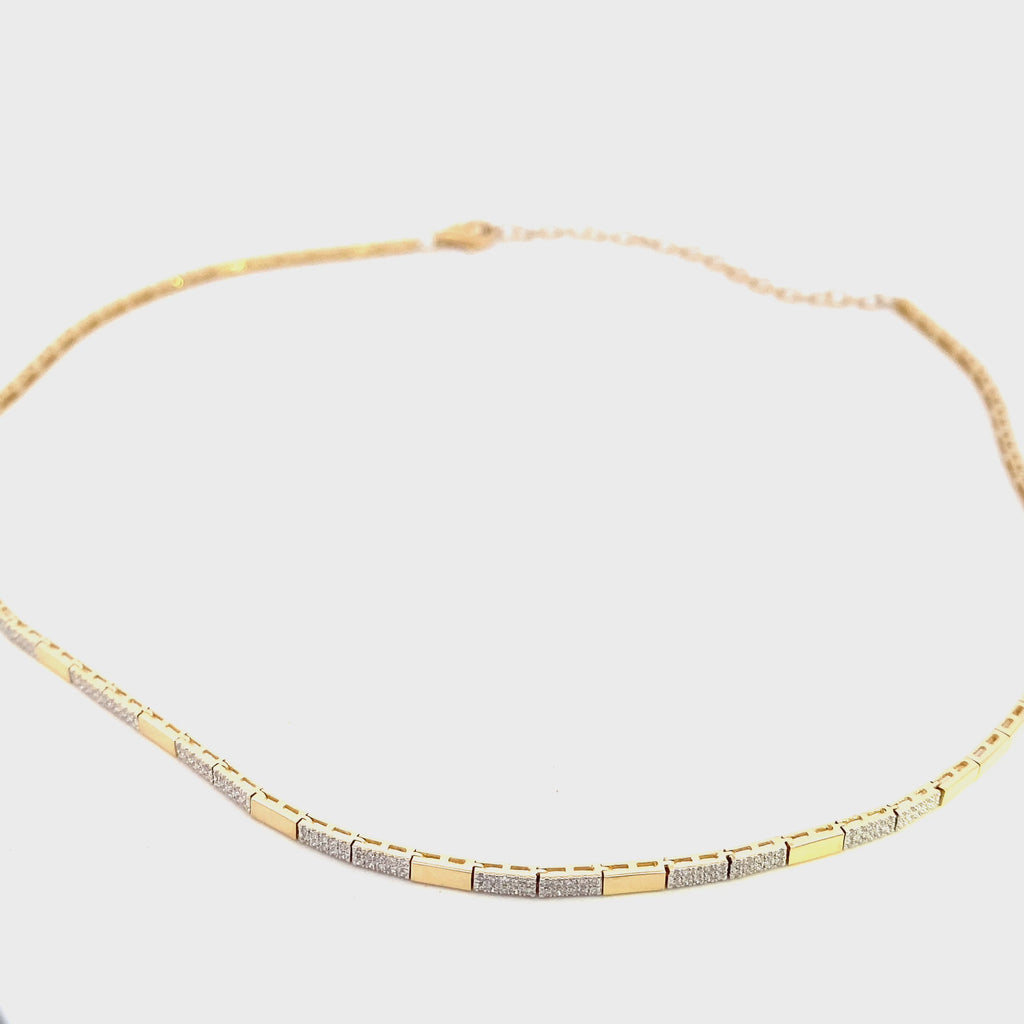 Necklace designed with alternating diamond and gold sections 14kt yellow gold