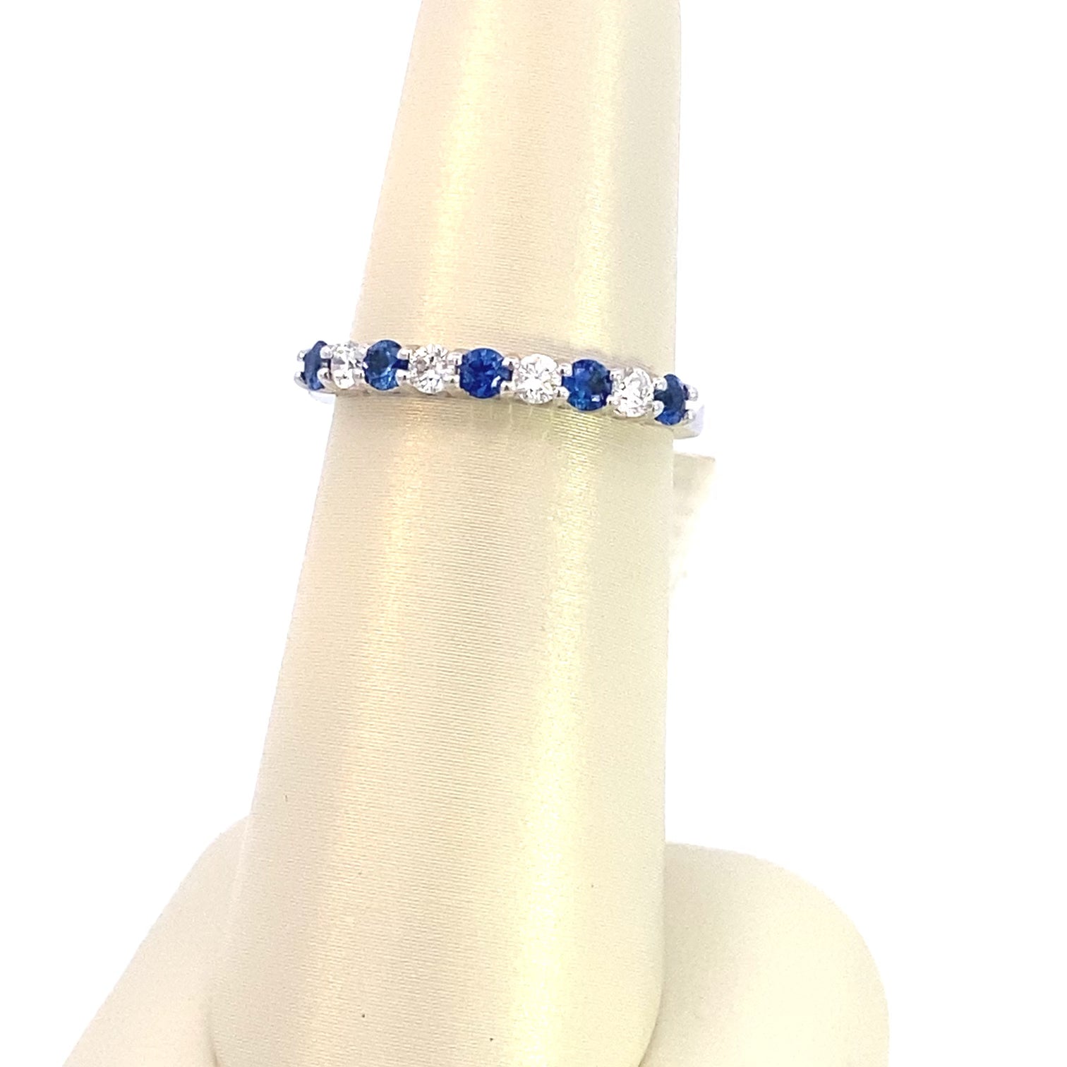 Ring 5 sapphires and 4 diamonds anniversary band 14kt white gold