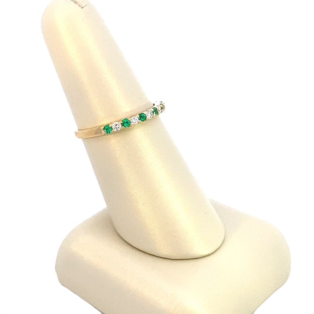 Ring- 8 emeralds and 7 diamonds anniversary band 14kt yellow gold