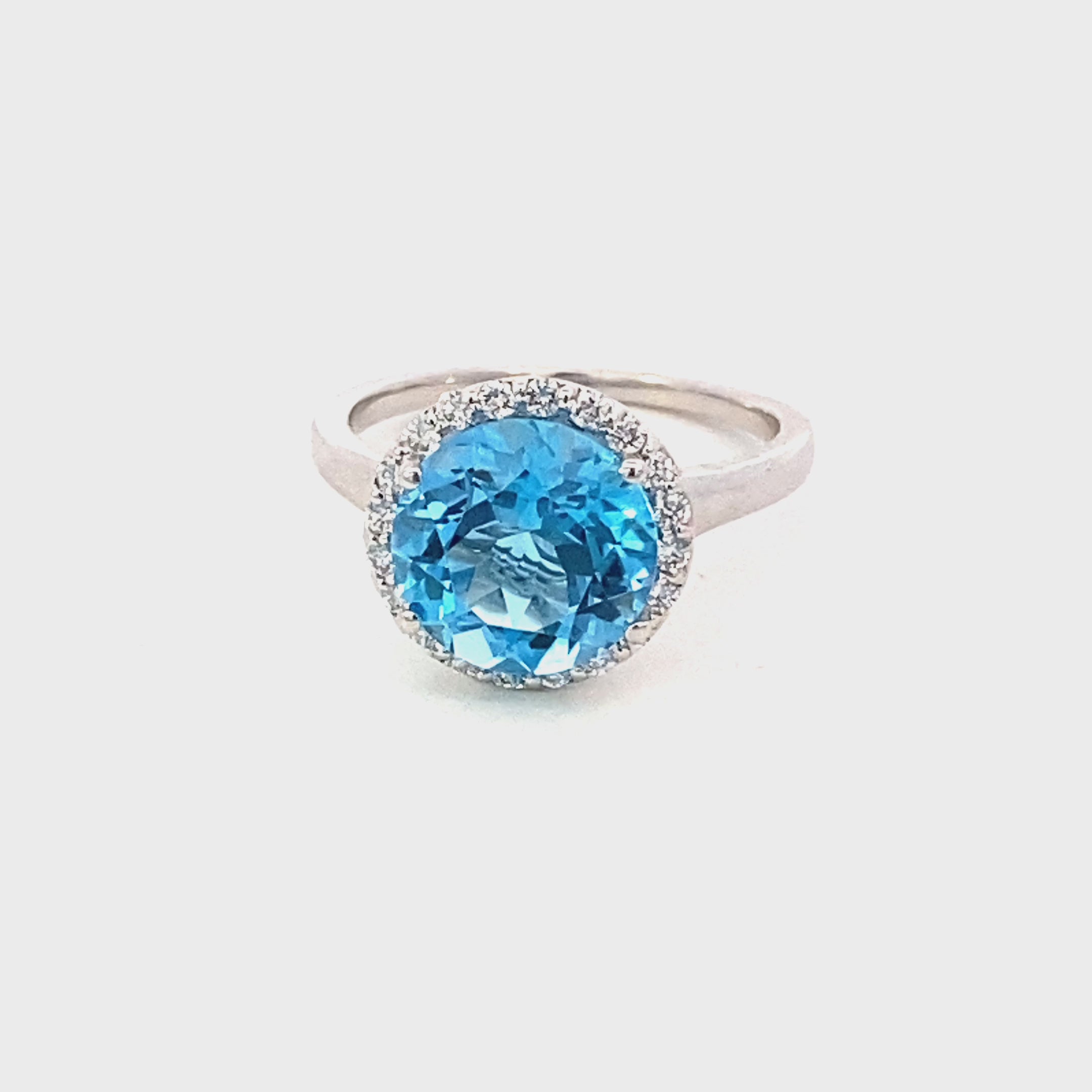 Ring- blue topaz ring with diamond halo 14kt white gold - Jabel