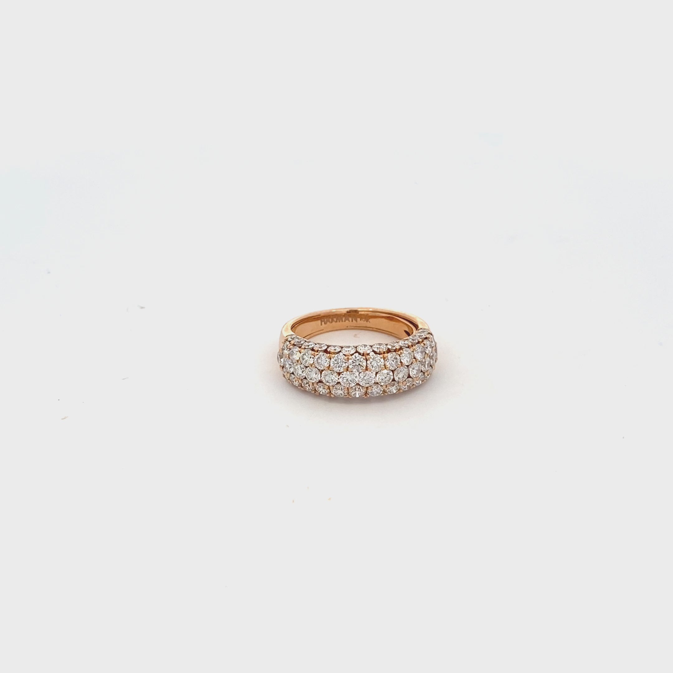 Experience the ultimate in luxury with our 3 row diamond pave domed ring! Crafted in 18kt rose gold, the domed design is adorned with a total of 2.66ct pave diamonds, creating a breathtaking sparkle. Elevate your style and make a statement with this stunning ring.