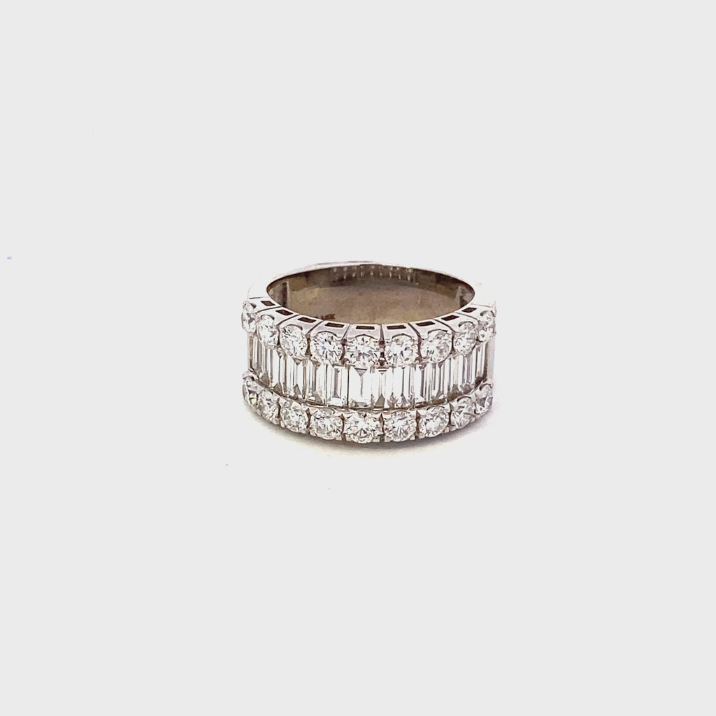 Ring with diamond baguette ring with 2 rows of round diamonds