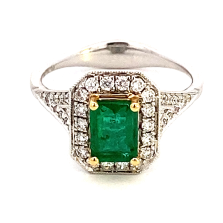 18kt White Gold Emerald & Diamond Halo Ring - Nemati